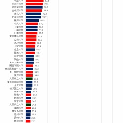 前回、学生数に累積分布率を乗じて大学のランキングを行いました。 この計算自体は、全体の中の(入試学力の)レベルの高い学生が集まっているか否かという点で、間違っていないと考えています。 ただ、上位間の関係が率的な差が小さいことから、どうしても学生数に左 ...