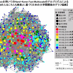以前に、Googleを使って、大学紹介から 「検索した大学」→「『他の人はこちらも検索』で表示された大学」 からの繋がっているノードの数を示しました(2015/12/21抽出データ)。 で、このデータをもとに、よくfacebookの分析とかで誰と誰が繋がっているとかのネッ ...