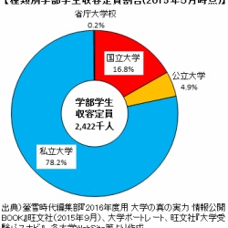 以前に昨年度のバージョンを載せてあったので、前回の定員過不足の時の分母とした今年度の学部(学部課程相当を含む)の在籍学生数のデータも載せておきます。 【学部在籍学生数順位】(2015年5月時点) ●:国立大学、▲:公立大学、◆:省庁大学校、○:私立大学 ( )内は ...