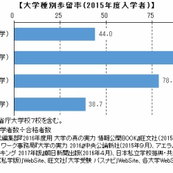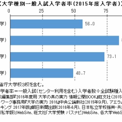 前回の歩留率と同様に、2015年度版の一般入試入学者率です。 定義は 一般入試入学者率(%)=一般入試(センター利用を含む)入学者数÷全試験種入学者数×100 のとなります。 ここでのデータも、螢雪時代編集部『2016年度用 大学の真の実力 情報公開BOOK』旺文社(201 ...