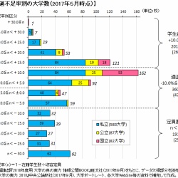 昨年版に引き続き、2017年5月の収容定員の過不足についての資料が出揃いましたので、掲載します(通信制は除く)。なお、省庁大学校については文部科学省的な収容定員の考え方が不明確なため、割愛しています。 今回は充足の割合が高い順に表記しています。 最も定 ...