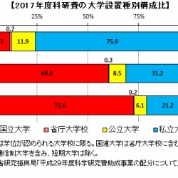昨年に続き、今年度の科研費の配分結果の資料が文部科学省から発表されました。総採択件数7万5,563件、配分額約2,117億円だそうです。 このうち、配分額(間接費を含む)について、研究機関や短大・高専など除いた大学別順位を示すと以下のとおりです。 【2017年度大 ...