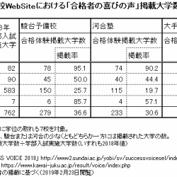 大手予備校の「合格者の喜びの声」掲載大学・掲載者数(2018年)