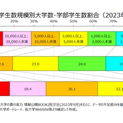 大学学部学生数ランキング(2023年度) 2023年10月29日 先月、『2024年度用 大学の真の実力 情報公開BOOK』が刊行されました。それをもとに、不足部分は螢雪時代8月臨時増刊『2023年 全国大学内容案内号』や大学ポートレート、各大学WebSite等で補足して、2023年度(5月時点)における大学の学部に在籍数する学生数を集計しました ... もっと読む