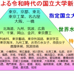 先に、この度、指定国立大学7校が指定されたことを受けて、それに先立つ国立大学三類型を踏まえた四階層での構成比を算出しました。 「そんじゃ、ついでに」と言ってはなんですが、旧来からの国立大学の歴史的な序列(?)である旧帝大・旧官立大・「駅弁」などについての構成 ...